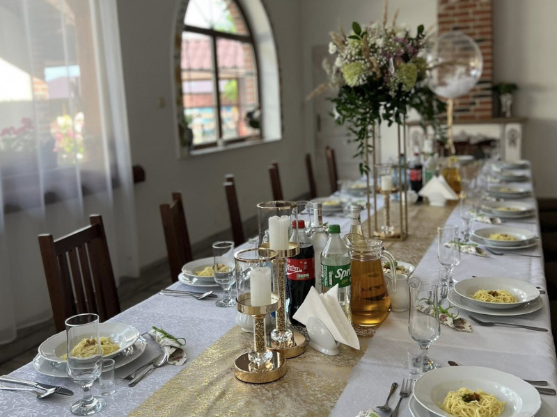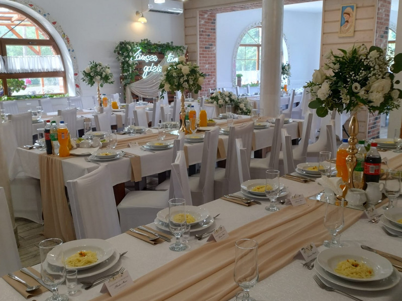 Na terenie gospodarstwa znajduje się sala w stylu rustykalnym na której można zorganizować imprezy okolicznościowe tj. chrzciny, roczki, komunie, 18-tki a także wesela .